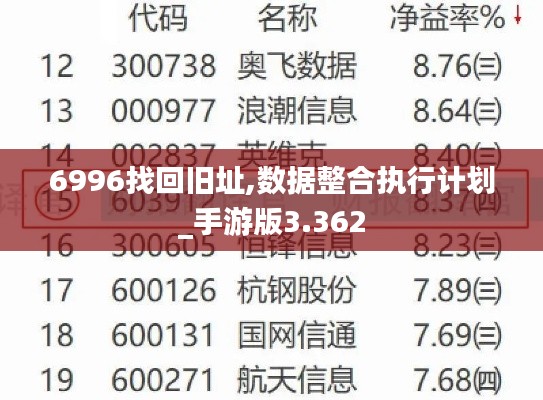 “6996找回旧址”和“数据整合执行计划_手游版3.362”的最终目标是实现持续优化,手游开发团队需基于数据分析的结果不断调整策略,并对实施效果进行监测和评估,这种以数据为驱动的持续优化能够帮助企业适应市场变化,保持竞争优势。